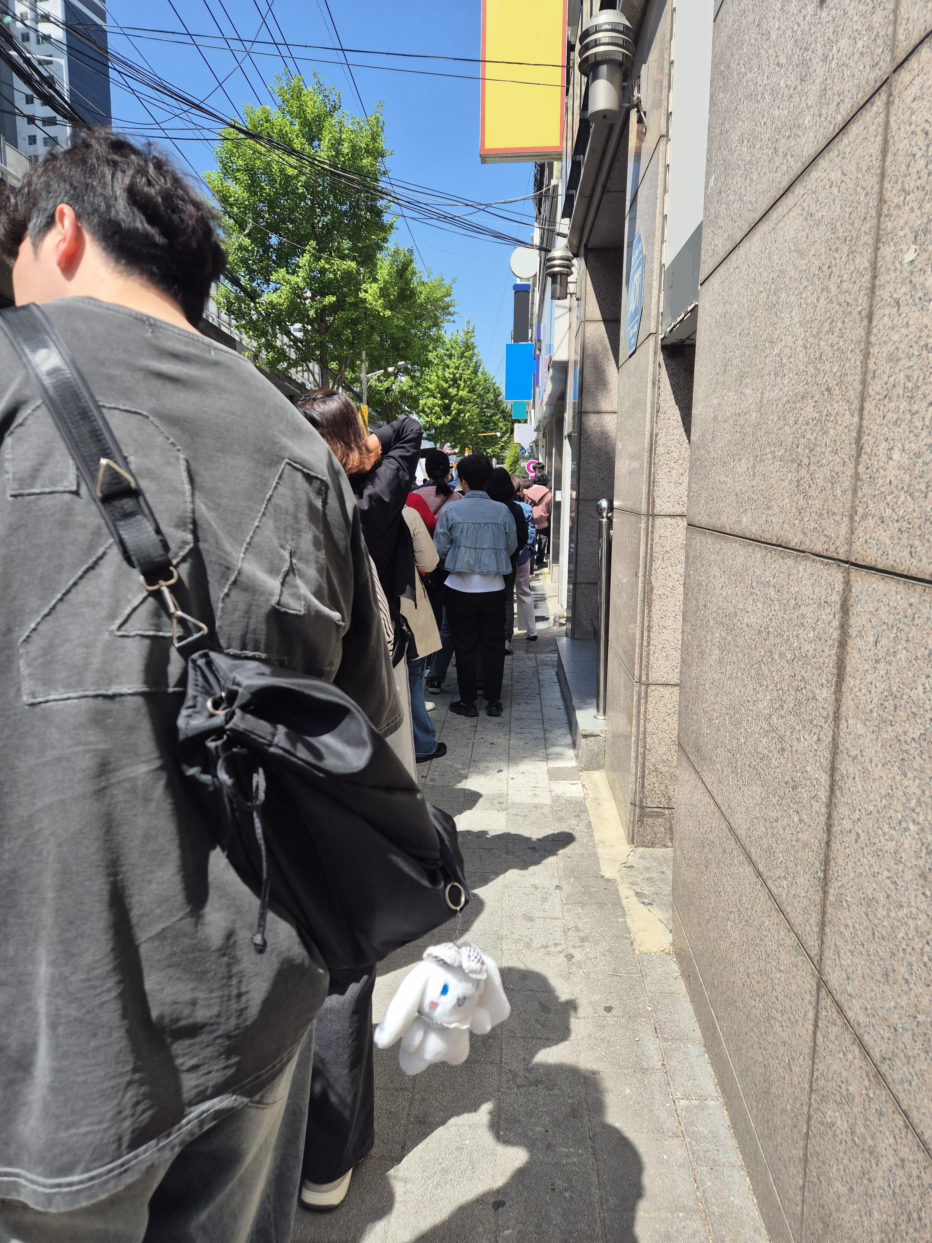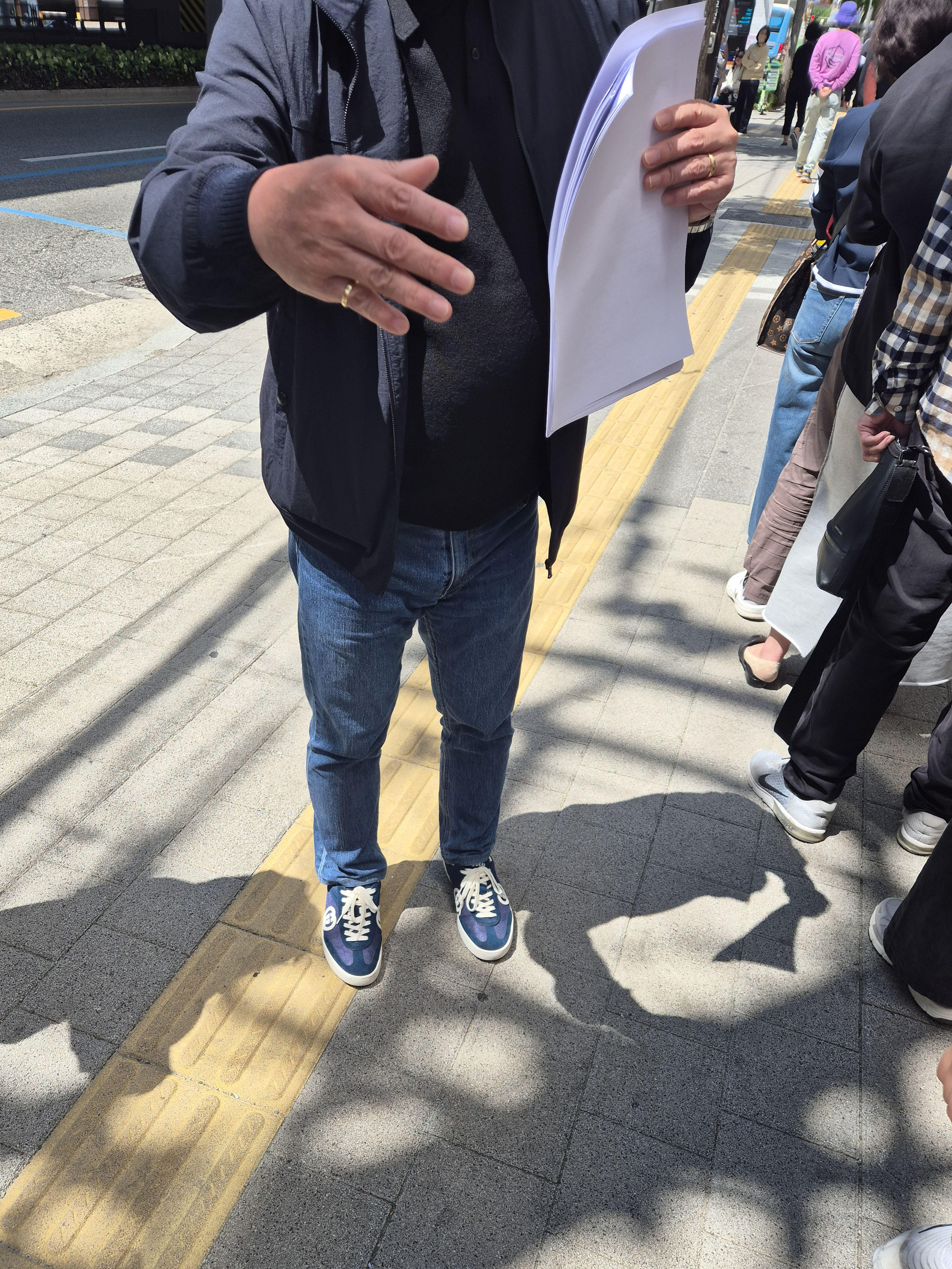 대기줄 맨 앞에 있는 SKT 직원이 들고 있는 명단에 직접 이름과 전화번호를 작성합니다. (이때, 가족 구성원도 SKT 이용자라면 함께 작성 가능. 예: 010-0000-0000(딸), 010-0000-0000(엄마))